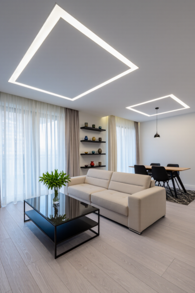 Produzimos sancas abertas, fechadas ou invertidas com iluminação embutida. Unimos cortes precisos, difusão equilibrada da luz e design sofisticado para criar ambientes mais aconchegantes e modernos.